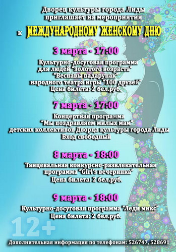К 8 Марта Дворец культуры города Лиды подготовил ряд мероприятий и предлагает провести праздник насыщенно и ярко. | |